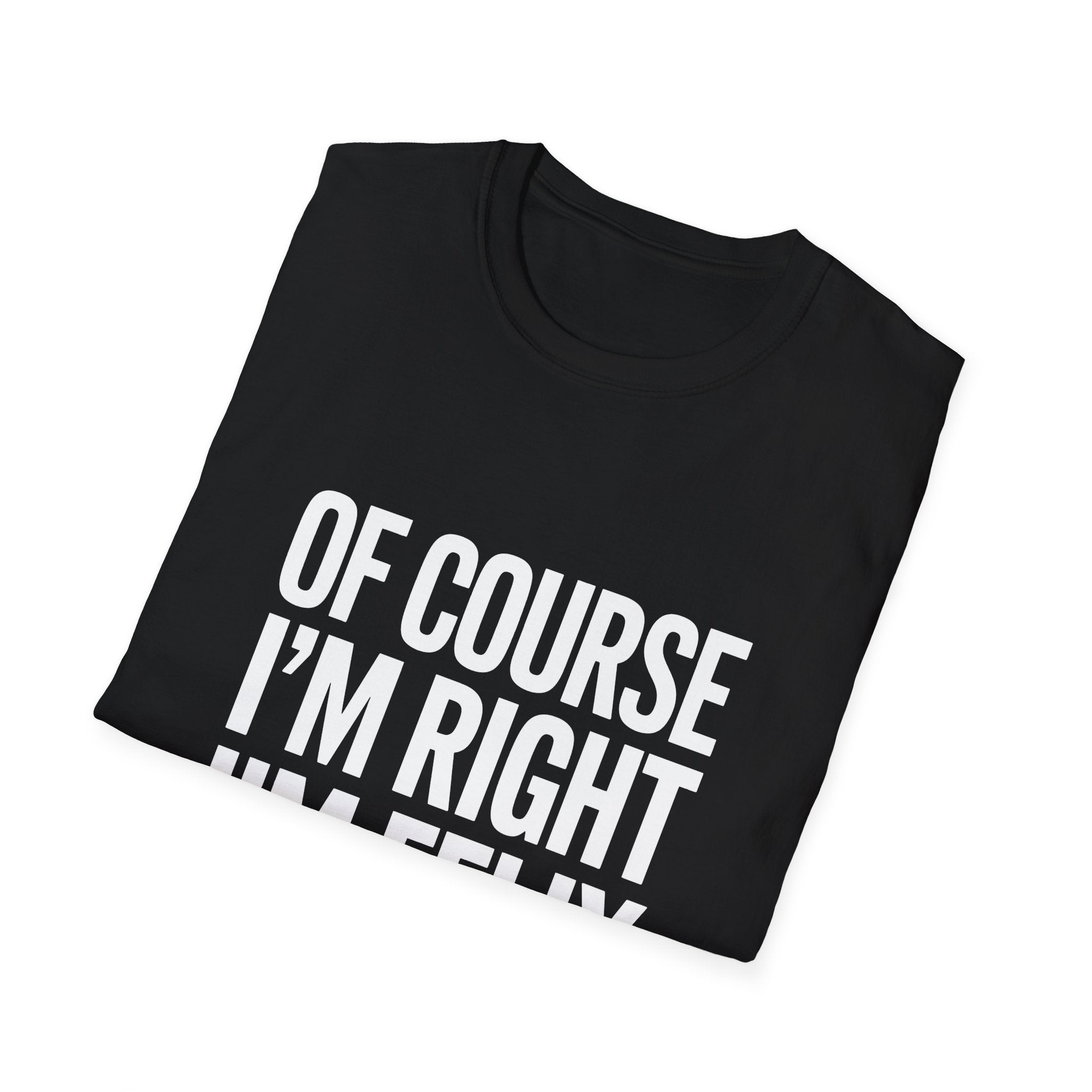 A unisex softstyle T-shirt that exudes confidence with its 'Of Course I'm Right I'm Felix' design. Perfect for those who enjoy a touch of humor and want to make a statement. Ideal for casual wear or as a fun gift for family and friends. Relevant for birthdays, holidays, and casual occasions.