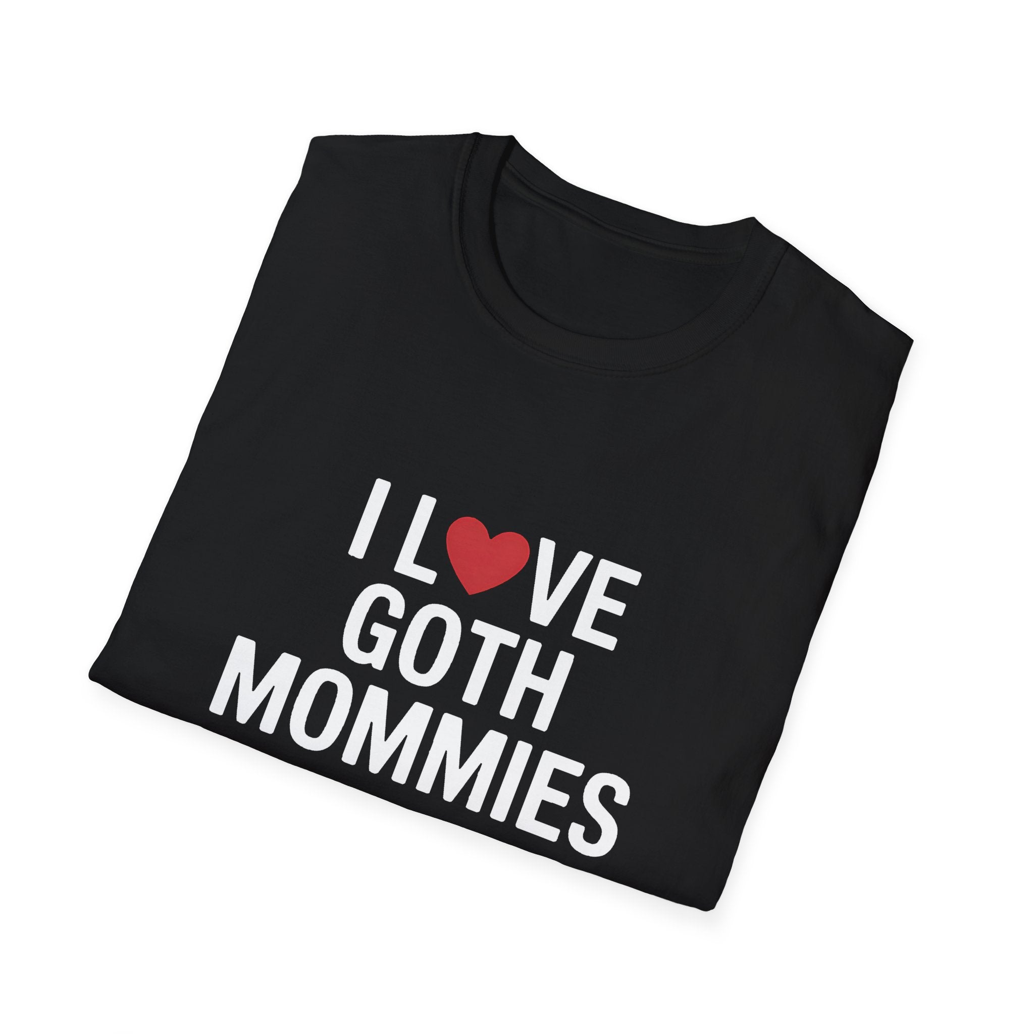 This I Love Goth Mommies T-Shirt exudes a dark, edgy vibe perfect for those who appreciate gothic fashion. It's a must-have for lovers of the goth aesthetic, ideal for wearing to music festivals, Halloween parties, or everyday casual wear.