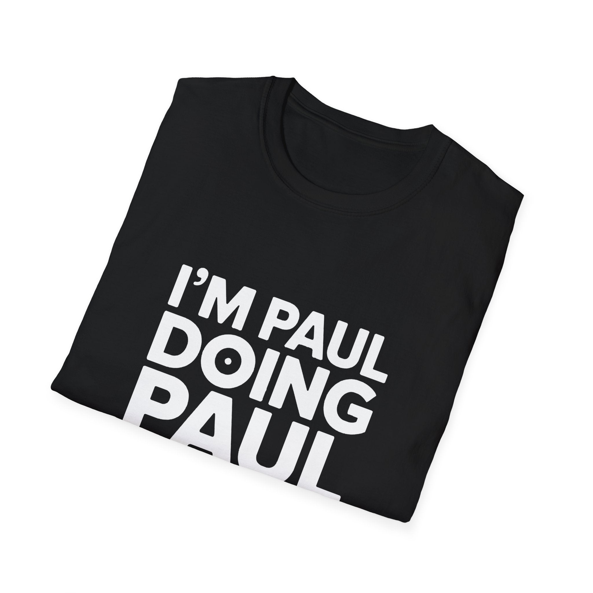 This soft and durable T-Shirt is perfect for those who love a comfortable and versatile style. The design 'I'm Paul Doing Paul Things' adds a fun and casual vibe to your wardrobe. Whether you're lounging at home or out with friends, this unisex T-Shirt is a great addition to your everyday outfits. Ideal for adults, this T-Shirt is made with high-quality materials and has a classic fit that suits any occasion.