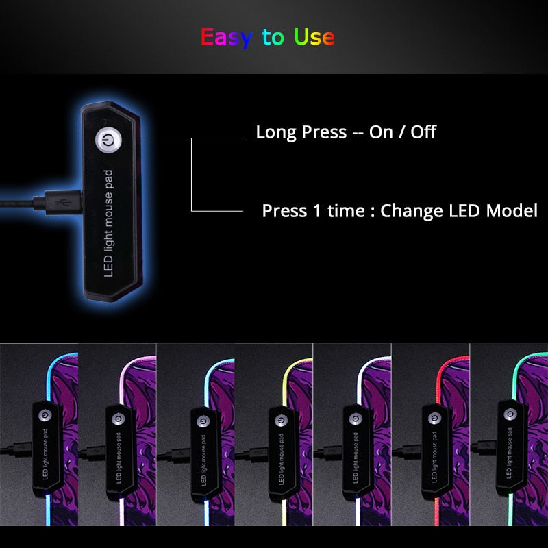 Our LED backlit gaming mouse pad is powered by USB, plug and play, no driver installation needed. One-touch control designed to switch the light colors and turn off, making it very convenient to use.